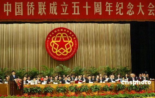 九月二十九日,庆祝中国侨联成立五十周年纪念大会在北京人民大会堂隆重举行。中共中央政治局常委、全国政协主席贾庆林代表中共中央、国务院到会祝贺并发表讲话。来自四十余个国家、地区的海内外侨界嘉宾和归侨侨眷代表、侨联工作者代表七百多人出席大会。为表彰侨联工作者做出的杰出贡献,纪念大会上向从事侨联工作二十年的工作者颁发荣誉证书。中新社发 任海霞 摄
