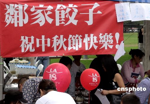 中秋前夕,美国洛杉矶华人食品店叫卖中国传统节日食品——饺子。中新社发 贾国荣 摄