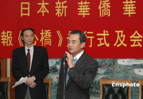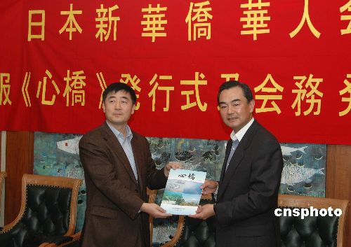 11月2日,日本新华侨华人会在中国驻日大使馆举行其会刊《心桥》的发刊会,中国驻日大使王毅在致词中对《心桥》的发行表示祝贺。他希望新华侨华人会能够继续发展壮大,充分发挥纽带作用,凝聚在日侨胞,为发展中日友好、维护在日侨胞的合法权益作出努力。中新社发 滕剑峰 摄