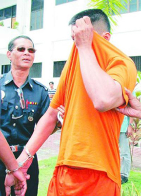 嫌犯于10日早上约10时,在吉打州警察总部警官带领下,和一批吸毒扣留犯一起被带上法庭。