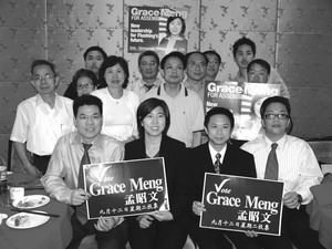 一位不愿透露姓名的社区人士表示,以目前的状况来看,孟昭文和杨爱伦都相当有实力,尤其是他们背后的孟广瑞和刘醇逸无疑是她们最大的“金字招牌”。孟广瑞和刘醇逸也是在不断磨练,经过失败后才成功,而她们一个是孟广瑞的女儿,一个是刘醇逸多年的左右手,她们有第一手的机会学习如何参加竞选,如何成功地把自己推销出去。