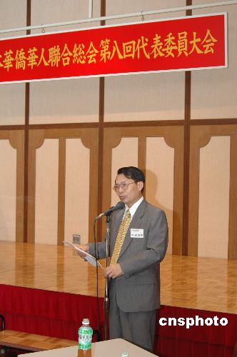 日本华侨华人联合总会第八次代表大会于7月6日下午在日本神户中华会馆举行,中国驻大阪总领馆罗田广总领事、中国驻日使馆倪道军、李辉一秘出席,来自日本十六个城市华侨总会以及侨校的代表近五十人出席了大会。中新社发 滕剑峰 摄