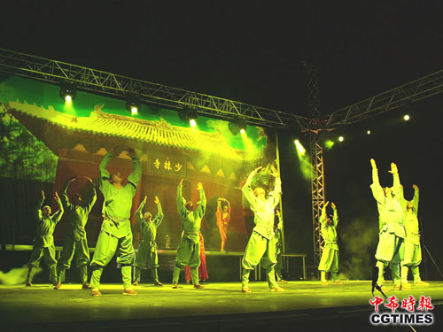 7月12日,早就颇受希腊观众期待的《少林传奇之十三棍僧救秦王》功夫表演在首都雅典的利卡维多斯山顶露天剧场上演。河南嵩山少林武术学院表演队以自己精湛的技艺征服了在场的所有希腊观众,从演出开始到结束的90分钟内,观众的掌声连绵不绝。