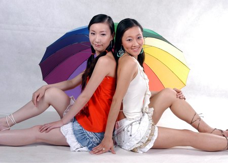 2006“中华小姐环球大赛”匈牙利赛区,日前选出入围欧洲赛区总决赛的选手,郝帅、吕宙获选参加欧洲决赛。图为两名获选参加欧洲区决赛的选手获邀为当地一雨伞作代言。(来源:匈牙利《新导报》)