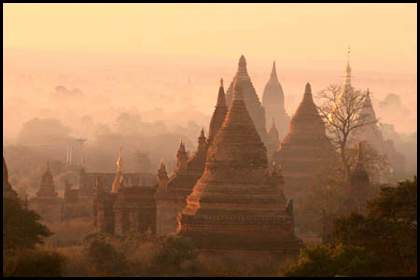 这个被誉为亚洲三大佛教遗址之一的蒲甘,根据记载,13世纪全盛时期,大小佛塔与佛庙共有五千多座。后来惨遭无情的战火蹂躏,加上1975年可怕的地震,经过一番修补,外貌无损和屹立不倒的还有两千余座。
