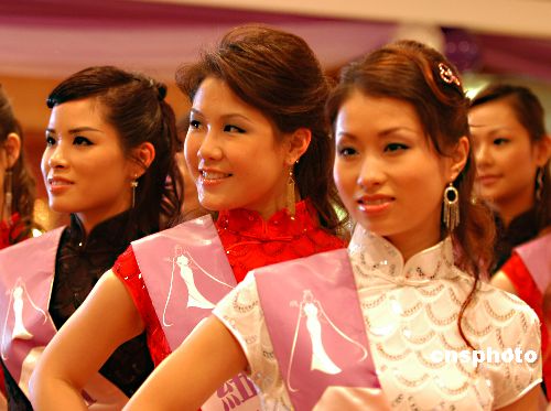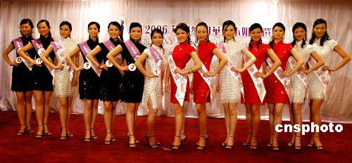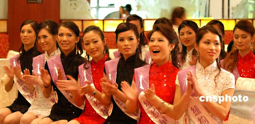 2006年纽约华裔小姐评选活动正在此间进行,十四位佳丽入围决赛圈。七月五日这批入围小姐在媒体面前亮相。中新社发 龚文谟 摄