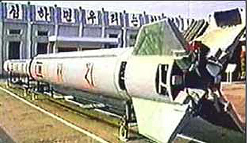 多段推进弹道导弹,射程超过1500公里,1998年8月进行过试射,一部分越过日本落入太平洋。该导弹是两段式导弹,分别以“劳动”和“飞毛腿”作为第一和第二阶段,朝鲜当时称其发射的是“光明星Ⅰ”人造卫星,美国国务院发言人詹姆斯•鲁宾当时也证实了那是颗人造卫星。