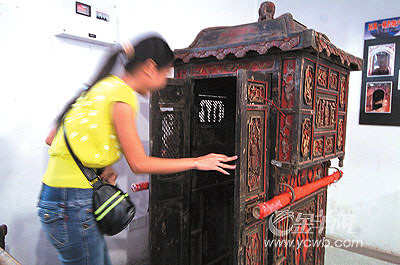 除了古代性文化文物展外,展览还完整展出了古代的婚俗用品,其中包括全套客家婚俗用品。一顶具有200年历史的嘉庆年间的宫轿很具吸引力,轿的立面雕刻图形仍清晰可辨。