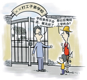 消息一出,海淀区有一万多名来自外地的中小学生将和他们的家长一道,为自己假期过后到哪里上学而操心。7月8日,该区有30余所打工子弟学校,因未达到办学标准,而被海淀区教委统一叫停。专门接受打工子弟的学校,在整个海淀区,只剩下3所。