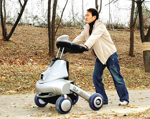 据介绍,银色机器人以坐在地上或沙发上的使用者的视线高度为标准,设计身高为50~60cm的高度,利用轮子行走,通过2台照相机进行的影像处理来识别周围的环境和物体,自行判断后移动。具备下象棋、教唱歌、做宠物等功能,可以为老人解闷。步行辅助机器人可以帮助老人和残疾人行走,还能帮助患者进行康复治疗。