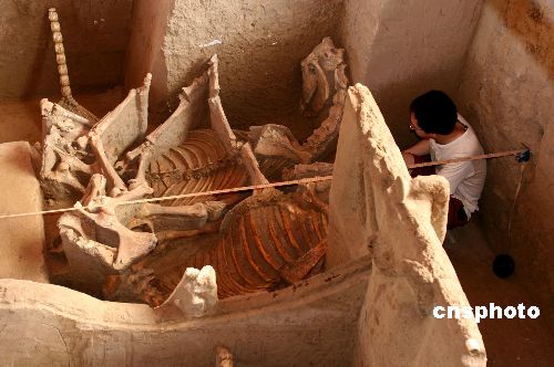 中新网三门峡七月十四电(赵晖)河南省三门峡市文物考古研究所近日在该市经济技术开发区发掘出一精美战国小型车马坑。据初步推断,其时代应为战国中晚期,是战国时期士族身份人士的墓葬陪送品。