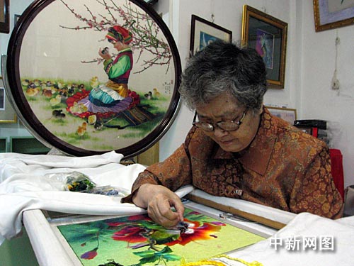 中国四大名绣之一的“广绣”,作为濒临失传的民间优秀艺术,最近入选中国国务院公布的第一批“国家级非物质文化遗产”名录。为此,记者近日走访了被誉为“现代广绣大师”的陈少芳女士。