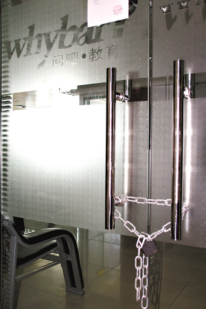 记者赶到这家公司的办公地点,发现已经人去楼空,办公室已经被铁链锁上,玻璃门上面贴着一张通知,上面写明“问吧”公司已经拖欠了大厦6月份的房屋租金3万多元,加上管理费、水电费、电话费以及违约金,总共拖欠近7万元,如果8月15日以前不交这笔钱,管理处将对该公司采取“强制措施”。