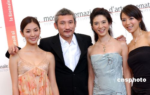 8月31日,第62届威尼斯国际电影节在意大利威尼斯开幕,中国著名导演徐克带着最新力作《七剑》进军威尼斯,于当日举行了《七剑》威尼斯首映式。图为徐克与《七剑》众美女一起亮相首映前的发布会。从左至右依次为:韩国女星金素妍、徐克、杨采妮和张静初。作者:Ic/cnsphoto