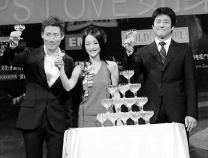中新网9月7日电 据重庆晨报报道,大型华语歌舞剧情片《如果·爱》,昨天下午在北京举行了电影原声带与EMI的签约仪式。导演兼监制陈可辛携剧中的主要演员张学友、周迅、池珍熙等豪华阵容悉数出席。