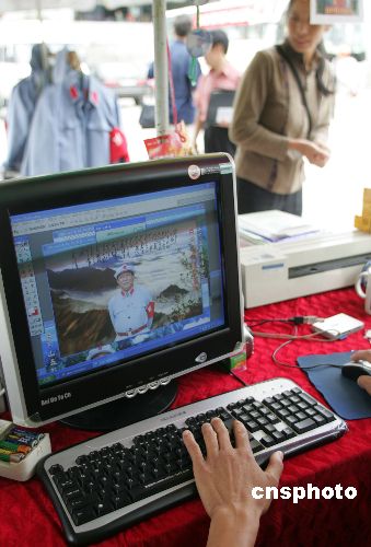 9月8日,江西井冈山一商贩用现代化的摄影手段招徕游客穿红军军装拍照留念。2005年1-8月,井冈山共接待游客171.56万人次,实现旅游收入8.88亿元,其中港澳台游客也呈现逐步增长的态势,占游客总数的5%。作为中国第一批重点风景名胜区,井冈山正成为红色旅游的最佳首选地。作者:武仲林