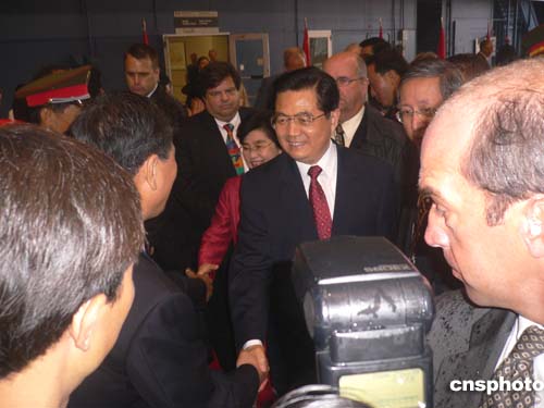 9月8日,中国国家主席胡锦涛抵达渥太华,开始对加拿大进行国事访问,受到当地华人、华侨和留学生代表的热烈欢迎。加拿大内贸部长兼政府驻众议院副领袖贝朗格到机场迎接。 中新社记者:吕振亚