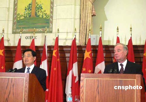 当地时间九月九日,中国国家主席胡锦涛与加拿大总理举行会谈后共同会见记者,双方宣布把两国合作关系提升为“战略伙伴关系”。作者:吕振亚