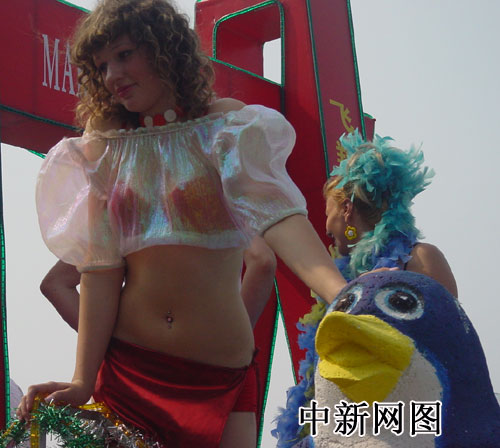 第7届中国大连狂欢节暨巡游表演精彩纷呈。表演队伍以展示现代服饰、卡通人物及我国少数民族服饰为主。本次巡游狂欢突出“知识性、趣味性、国际性”。既保留了民族特色,又具国际色彩。特别是来俄罗斯的妙龄少女清凉薄衫风情万种吸引了观众与摄影记者的眼球。她们所到之处必引来阵阵惊呼声。面对镜头丝毫不害羞。不断搔首弄姿大秀前突后翘好身材。(张哉麟)