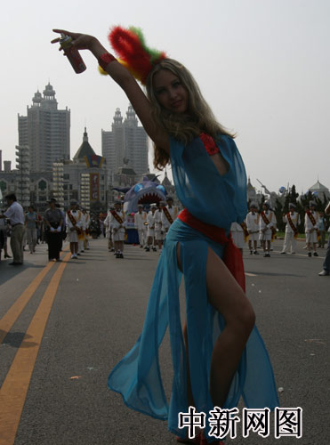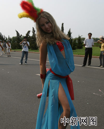 第7届中国大连狂欢节暨巡游表演精彩纷呈。表演队伍以展示现代服饰、卡通人物及我国少数民族服饰为主。本次巡游狂欢突出“知识性、趣味性、国际性”。既保留了民族特色,又具国际色彩。特别是来俄罗斯的妙龄少女清凉薄衫风情万种吸引了观众与摄影记者的眼球。她们所到之处必引来阵阵惊呼声。面对镜头丝毫不害羞。不断搔首弄姿大秀前突后翘好身材。(张哉麟)