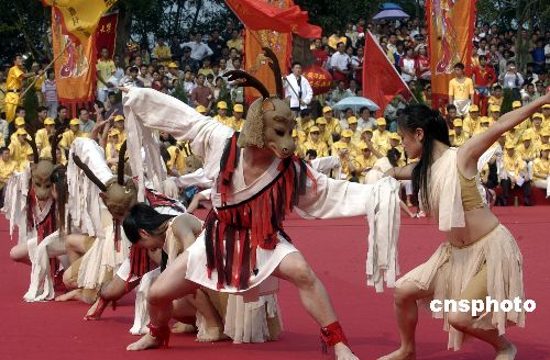图:大型舞蹈《祭炎帝》助兴中国湖南旅游节