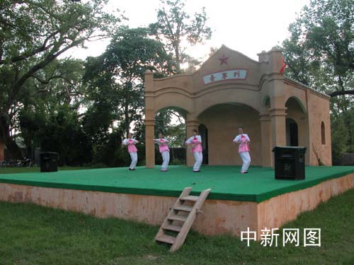 台上正中的演员唱完这支歌又表演了一个舞蹈,之后又兼报幕,据说还是个导游,真是人才,当年根据地时期这样的人才肯定更多