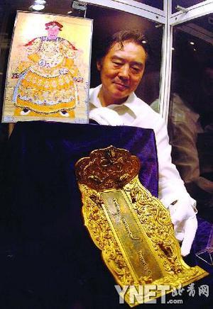 据介绍,经国内专家鉴定,此次即将展出的乾隆牌位原先很可能供奉在太庙中,后被八国联军抢走。牌位长32.5厘米,为铜鎏金,九条鳞片指爪清晰的龙环绕着牌位中央“高宗纯皇帝”的满文。据拍卖公司透露,这个牌位是藏家从一个德国人手中购得的,辗转欧美经香港带回大陆。那名德国人称,牌位一直在其祖父的地窖中收藏。