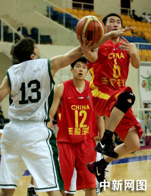 由于两队实力相差悬殊,昨天过生日的唐正东也得到了比较多的上场时间。在孱弱的沙特队面前,他没错过表现的机会,在内线的防守、进攻都很出色。上半场中国队以56比6领先了整整50分。