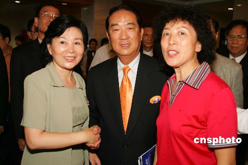 九月十五日,亲民党主席宋楚瑜在上海汤臣集团出席台商欢迎茶话会,许多女台商竞相与宋楚瑜合影。作者:潘索菲