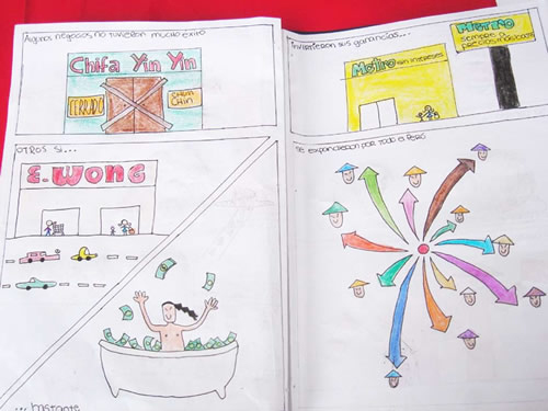据《秘鲁通》报道,在秘鲁侨校“若望二十三世学校”举行的“中国文化周”活动中,该校中学三年级华裔学生DANIEIA WAN SIU和VANESA WU共同创作的有关华人移民主题连环漫画,成为了此次“中国文化周”的亮点。