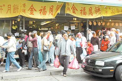 据美国《星岛日报》报道,17日的华埠比平日要热闹得多,华裔居民都趁着周末放假,来到华埠购物过节,士德顿街上人头涌涌,一片车水马龙。商家除了及时推出各类应节食品之外,还减价促销月饼,希望争取这个今年售卖月饼的最后良机薄利多销。