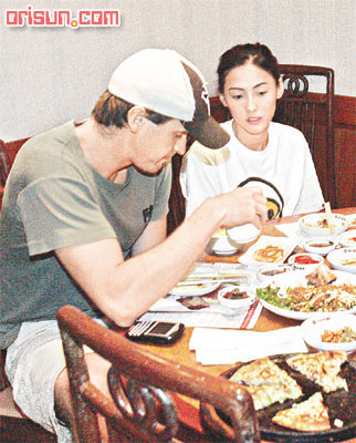 前晚七时多,身穿T恤牛仔裤的柏芝与穿街坊装的Jeroen步出跑马地爱巢,乘的士往铜锣湾新罗宝韩国料理吃烧烤,二人坐在贵宾房内,点了韩国薄饼及烧牛仔骨等食品。就现场所见,柏芝与男友并肩而坐,满桌摆满美食,其间有记者拍照时,柏芝即面露不悦地喝道:“你们可不可以出去呀?”身旁的Jeroen则气定神闲,还拿起杯子细细品茶。