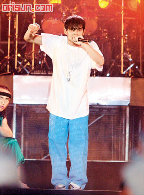 周杰伦前晚穿礼服踏着十字架吊台空降会场,现场近六万歌迷即表现疯狂,歌声一起,全场歌迷已站在位置上欣赏,情绪高涨。Jay先后大跳Hip-hop舞、又耍剑与自弹自唱,更先后献唱张震岳的《爱我别走》与王菲的《红豆》,但却一度忘记歌词,更搞笑地要自己改歌词填上。有两位女歌迷更趁Jay与南拳妈妈成员合奏钢琴期间,突破现场保安的防线,冲上台向Jay献花,他向Fans笑说:“你们还是在台下欣赏,这样我们会有点尴尬。”
