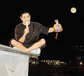 华仔去年中秋节是在台湾巡回演出中度过,今年就是海宁,华仔听说海宁是钱塘江观潮最佳位置,碰巧这个月也正是海潮节,可惜华仔不能外出,无缘亲往观潮,只得看工作人员拍回来的录影带。
