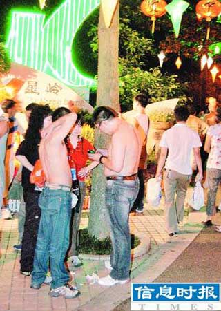 面对一次又一次的“黑镜头”,更令人震撼的是市民表现出来的麻木:不雅行为者丝毫不理会记者的拍照,周围游客丝毫不理会周边的不雅,甚至相关部门的有关人士,对于不雅现状也已习以为常。