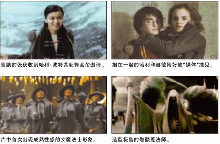 时长两分钟的预告片里几乎包含了所有这些关键情节,气势异常恢宏。比如三巫斗法大赛中出现的火龙、形象诡异的黑魔标记、像极《战争与和平》的霍格华兹圣诞节舞会和惊鸿一瞥的伏地魔。此外还有哈利·波特约会张秋的浪漫情节和他与赫敏拥吻的“激情”场面。