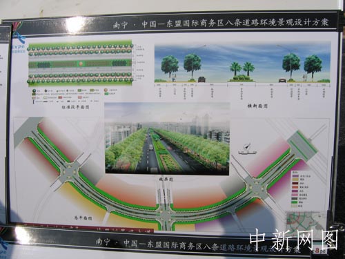 据悉,按商务区规划和建设计划,南宁·中国一东盟国际商务区第一期市政道路1#、2#、4#、6#、7#和16#等六条主干道路已于2005年5月动工建设,预计9月底建成通车。目前各路段路面基层基本完成,开始铺设粗粒式沥青砼路面;主干道路10月15日前完成路灯安装和部分绿化。
