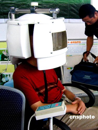 9月22日,为期三天的“2005年华东(南京)国际医疗器械及口腔设备材料和生物制药器械展览会”在南京国展中心开幕。不少参观者纷纷试用展会上推出的医疗及保健器械新产品,通过试用感受其产品性能。作者:孙忠南