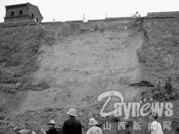 古城墙内侧脱落后,平遥县文物管理局当即向省文物管理部门作了汇报。记者下午赶到现场时,已有施工人员开始清理坍塌下来的虚土,古城墙上正在布置隔离设施,阻止游人靠近脱落处。“前两天雨下得太大,气象部门称总降水量是92.7mm,还正好是刮东风。”现场的一位古城墙管理人员称,大雨是墙体脱落的“罪魁祸首”。城墙内侧土层脱落厚度34cm,脱落处还露出了墙体内夯土层旧的裂缝。