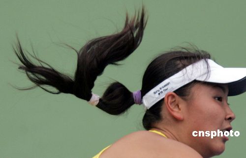9月23日,中国选手彭帅在北京举行的2005年中国网球公开赛女单四分之一比赛中以 0:2负于德国选手格罗妮菲尔德,无缘中网四强。作者:武仲林