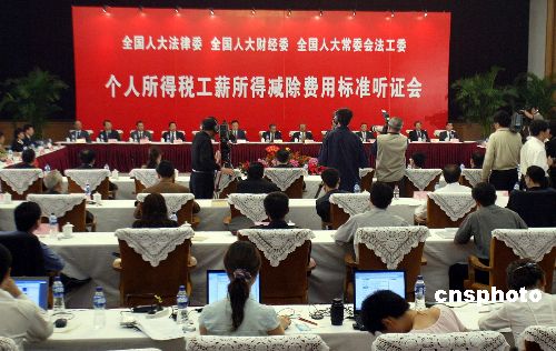 中新网9月27日电 据新京报报道,全国人大常委会今日将在北京就个税起征点提高到1500元是否合理举行听证会,目前在全国人大常委会、财政部、国税总局以及社会群众中对起征点的意见非常多,有专家认为,要想通过听证达成共识将相当困难。