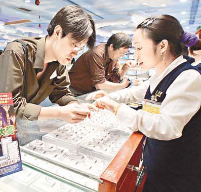 周大福珠宝金行今年亦力推价格创九千七百元高位的白金产品系列,金行副行政经理黄剑文表示,个人游开放后内地客来港消费看重首饰款式,如白金一类高价货正合心意。太子珠宝钟表店董事朱继陶亦说,内地人对名牌情有独钟,并开始购买具收藏价值的手表,人均消费高达五万元以上,该公司已要求员工不要放假。