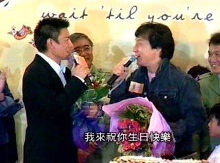 前晚,刘德华、黄日华、莫文蔚与应采儿在导演陈德森的带领下,在北京出席电影“童梦奇缘”的首映会,和影迷见面。不过,早在当日下午就有上千粉丝挤爆影城,就为了要先帮华仔庆祝44岁的生日!他们拉起了“影帝年年有,票房节节高”及“生日快乐”的横额,还送上会喷火的蛋糕,祝他生日快乐及新片“童梦奇缘”在大卖!
