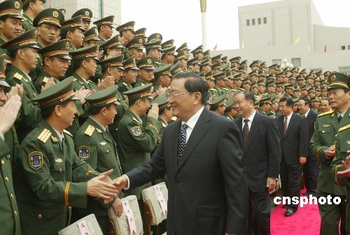 九月二十八日,中共中央政治局常委、中央政法委书记罗干率领的中央代表团在乌鲁木齐市慰问新疆武装警察部队。作者:史利