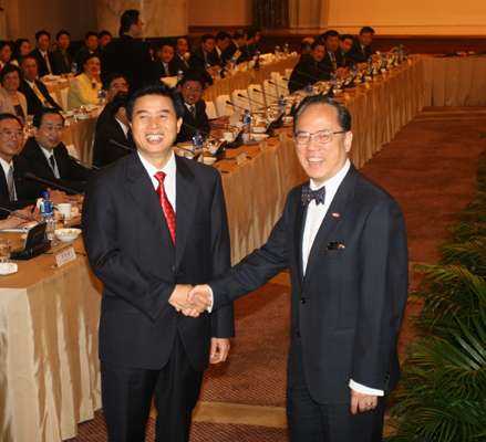 香港特区行政长官曾荫权与广东省省长黄华华昨日在港共同主持第八次粤港联席会议。