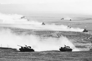 10时许,值班电台中传来上级命令:“各攻击群,冲击。”刹那间,狼烟四起,全营成左、中、右三路纵队,坦克在前、步战车在中、扫雷车及各种装备保障车在后,如离弦之箭直扑“敌”前沿。
