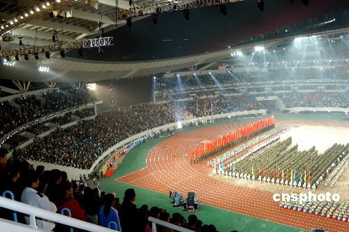 10月6日晚,在南京奥林匹克中心体育场举行的第一场带观众彩排吸引众多市民前来观看,拥有十万座位的南京奥体中心首次接纳近九万名观众,五彩缤纷的开幕式和全民健身运动展示为观众带来了无以伦比的美的享受。作者:王跃武