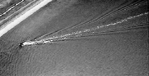在孙兆平公布的这段录像中,记者看到,随着周围游客大叫“天池怪兽”,画面全部便从人转向天池,刚才还平静的水面上,一个黑影象快艇一样游动,身后留下的一道长长的水波纹。