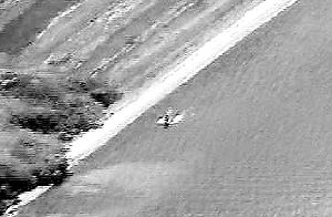 为了更清晰的看清“怪兽”样貌,孙兆平从录像上截取照片,图片上,“怪兽”身体特别长,呈黑色,由于在水中,看不清形体,初步观测它至少有10多米长。由于DV机的焦距有限,所截取的照片上的“怪兽”也并不十分清晰。(侯佳音)