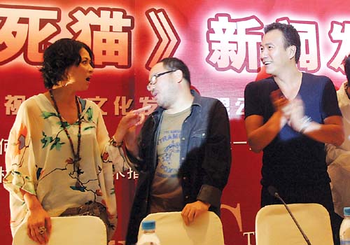 刘嘉玲、胡军等演员在张一白之后一一出场亮相。身穿一袭花绿色休闲装的刘嘉玲一出现立刻成为全场焦点。有记者问刘嘉玲和胡军合作《好奇害死猫》的感受,刘嘉玲顾左右言其他地说,这次到重庆排戏的感觉比上次来拍《一江春水向东流》时印象深刻了不少,“可能因为导演是地道重庆人的缘故吧”。